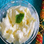 Makhan Mishri is very easy and quick to make. All you need is unsalted milk cream and some mishri daana. You can also collect the cream from the full cream milk – gather the cream on the top of milk over a few days. When you have enough of cream, churn the cream well in a mixer with the help of cool water until the cream turns into a buttery form. Continue the churning until the butter and the whey starts to separate. Collect all the butter, and put into to refrigerator to chill for about an hour. Add the mishri dana(crystallised sugar lumps), as well as some nuts, and offer it to your beloved deity.