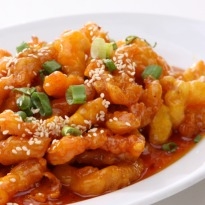 Then toss the fried potatoes until combine with the sauces. Sprinkle some roasted sesame seeds and garnish with spring onion greens.