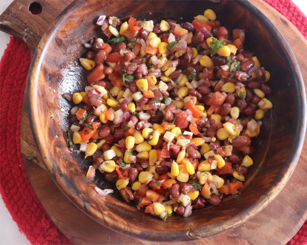 Mix Rajma, corns, tomatoes, cheese, coriander leaves, spring onion and salt.