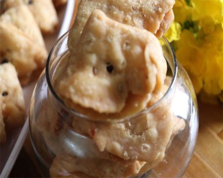 - Now fold it to make a triangle and again flatten it. Pierce 1 black pepper in mid and fry it in hot oil on medium flame till golden brown.