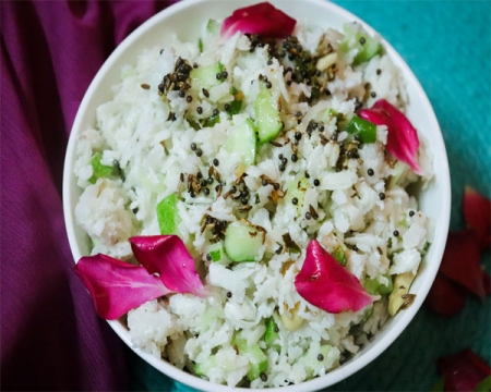 Add the cooled tempering. Mix well and gopalkala is ready to offer to Govinda – Krishna.