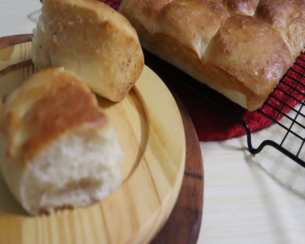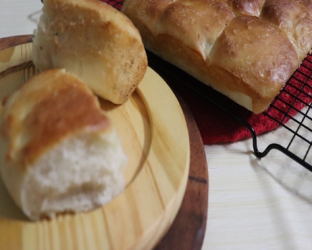 In a bowl add flour , milk powder and salt. Mix and make a well in the centre and add the yeast mixture. Knead to a soft pliable dough adding the butter.