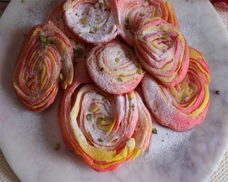 While frying you will see the layers opening beautifully. Transfer the fried chirote on plate and immediately sprinkle the powder sugar generously.